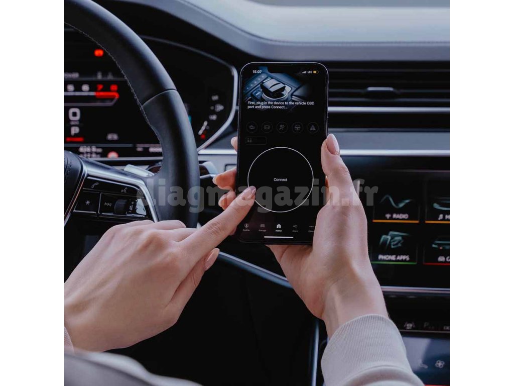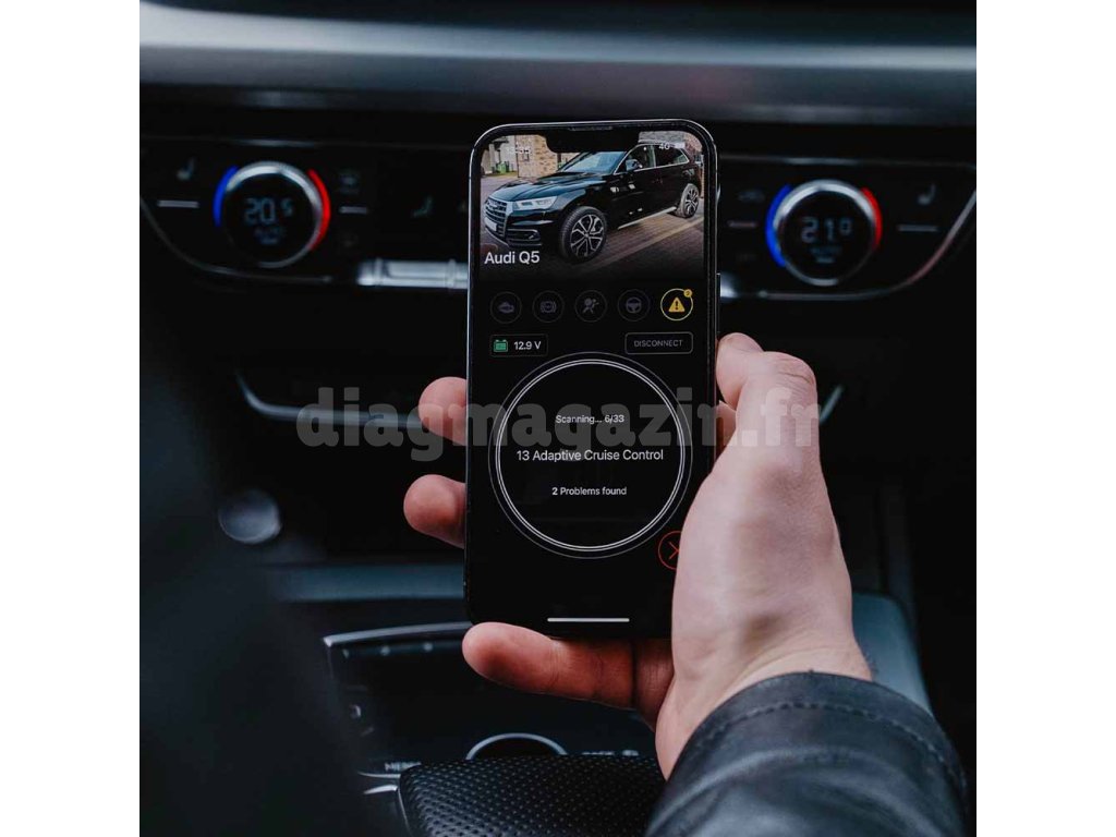Applications en un clic utilisant des crédits, analyse complète du véhicule, lecture et effacement des codes d'erreur, données en temps réel, tests de sortie, état de la batterie, graphiques, alarmes numériques, partage des données de diagnostic, historique des connexions, informations sur le véhicule, identification automatique par numéro d'identification du véhicule (VIN), fonction garage, sauvegarde du véhicule, suivi des codes d'erreur, procédures utilisateur.